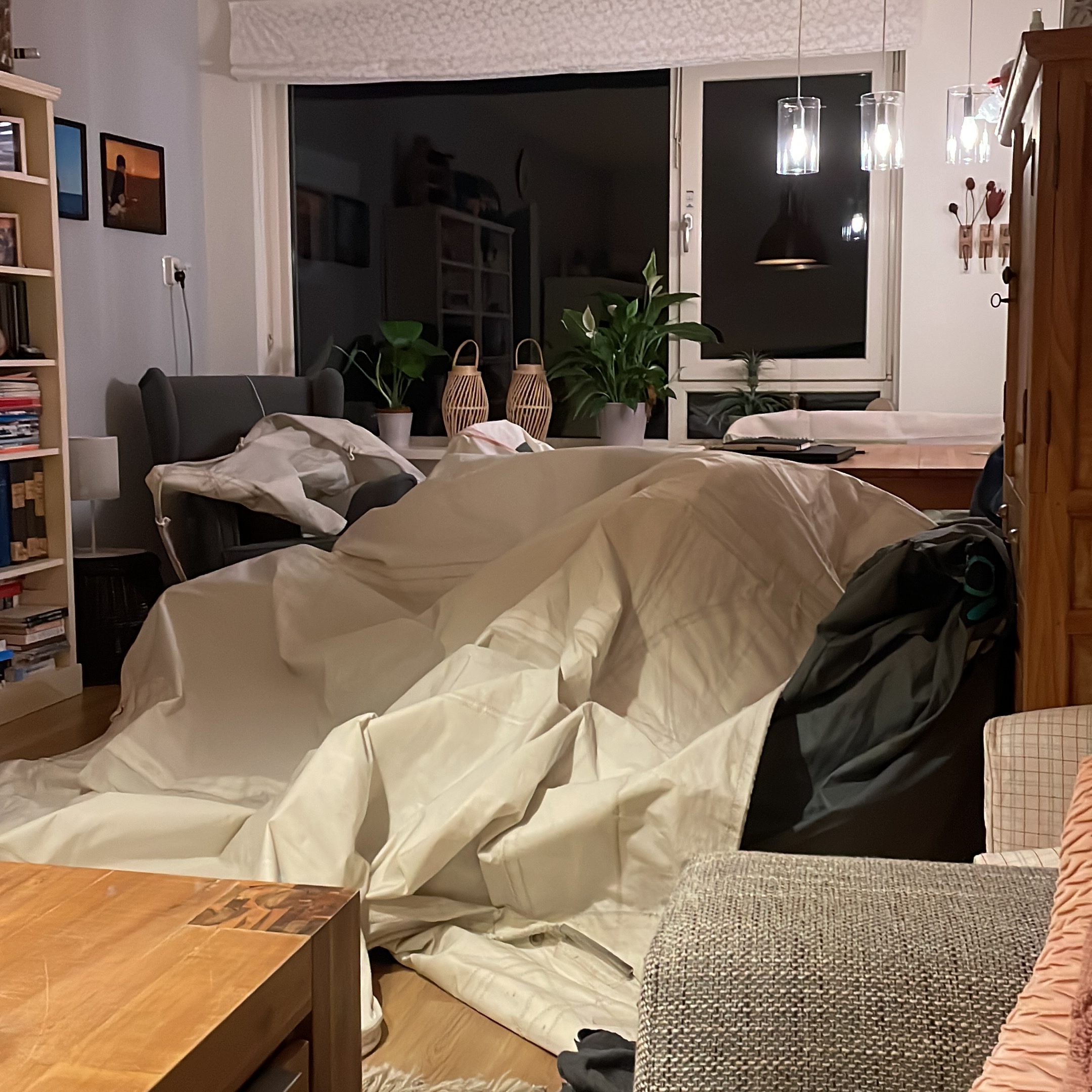 Ook dit vraagt de nodige voorbereidingen. Dus na een laatste rondje zeilen eerst maar de zeilen eraf. Helaas zijn ze nog niet helemaal droog, dus verandert m`n huiskamer in een zeilenparadijs. Één van de voordelen van alleen wonen is dat niemand behalve ikzelf daar last van heeft.